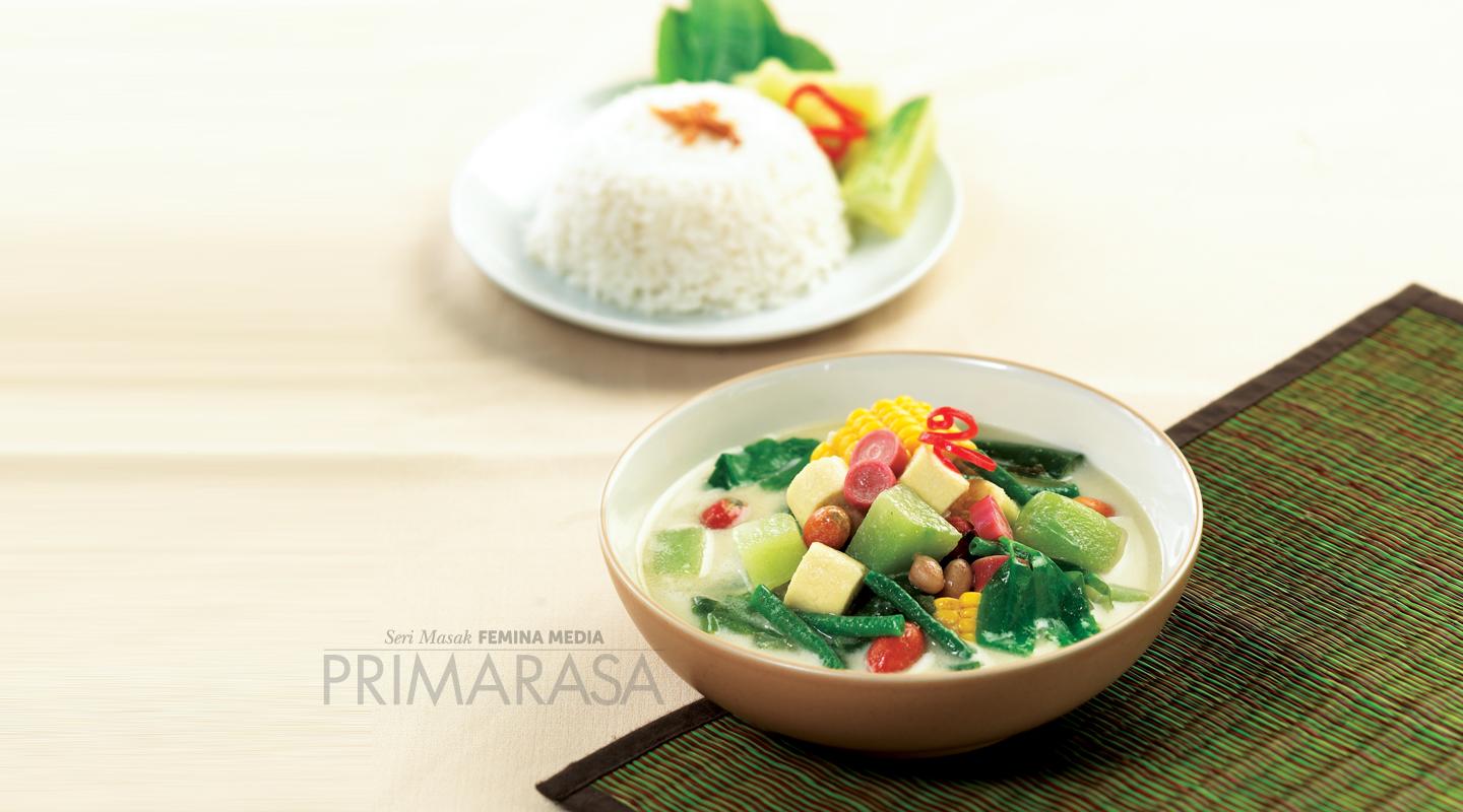 3. Tuangi santan, masak sambil ditimba-timba hingga mendidih.